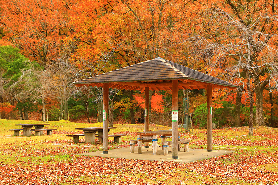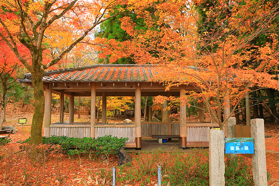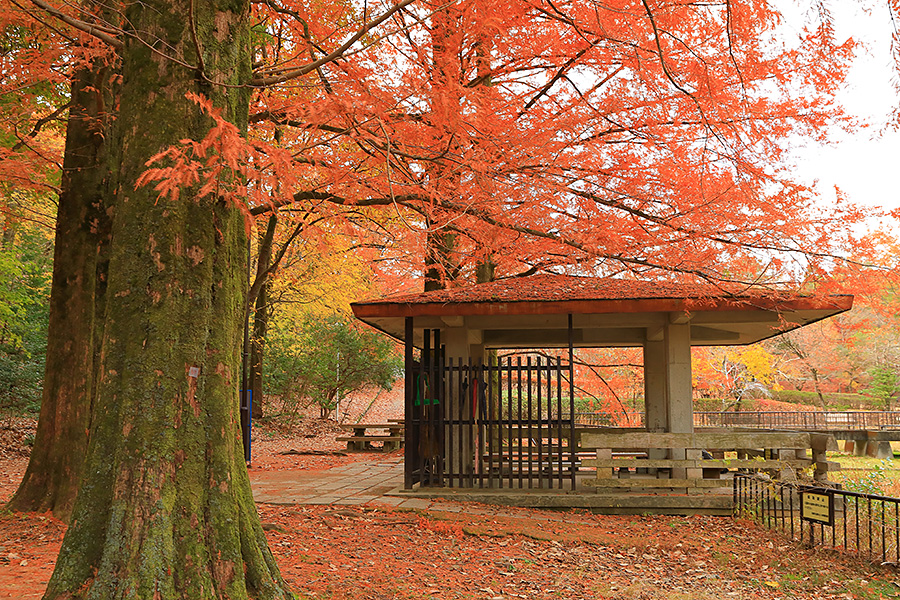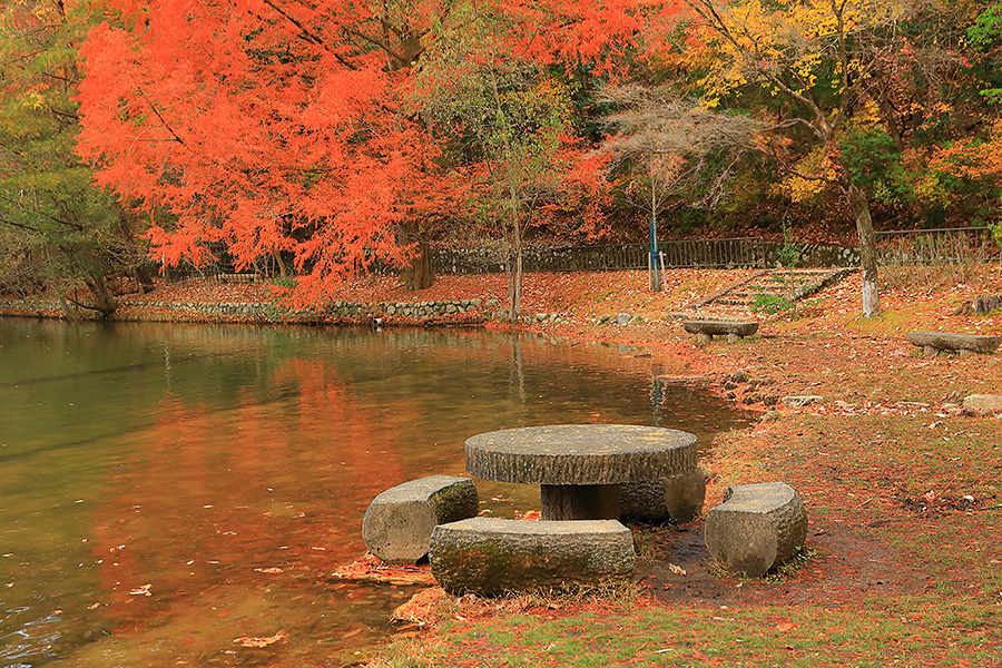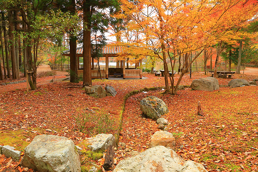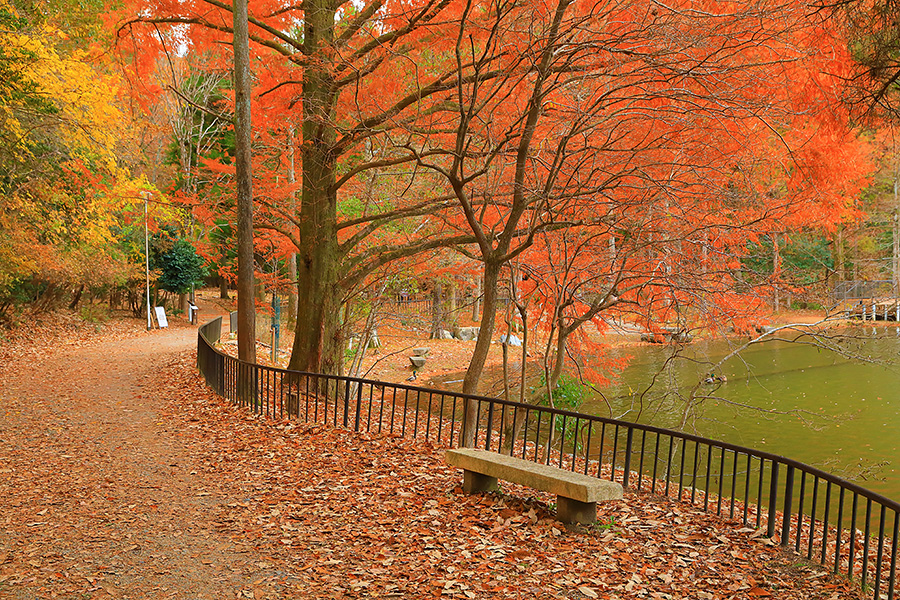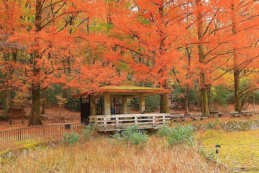 宝が池公園の紅葉の見頃は、例年11月中旬〜下旬。12月上旬に訪れるなら落ち葉や散紅葉が楽しめるだろう。 |