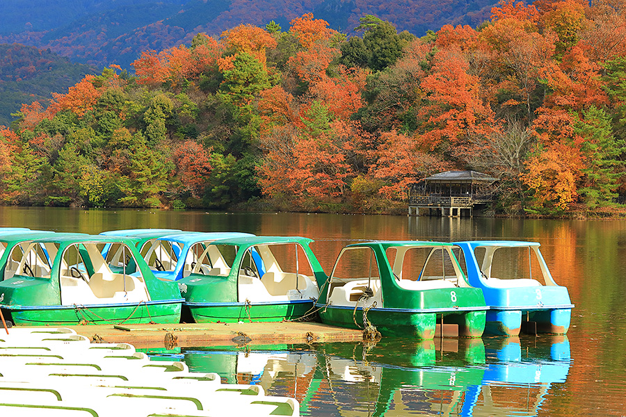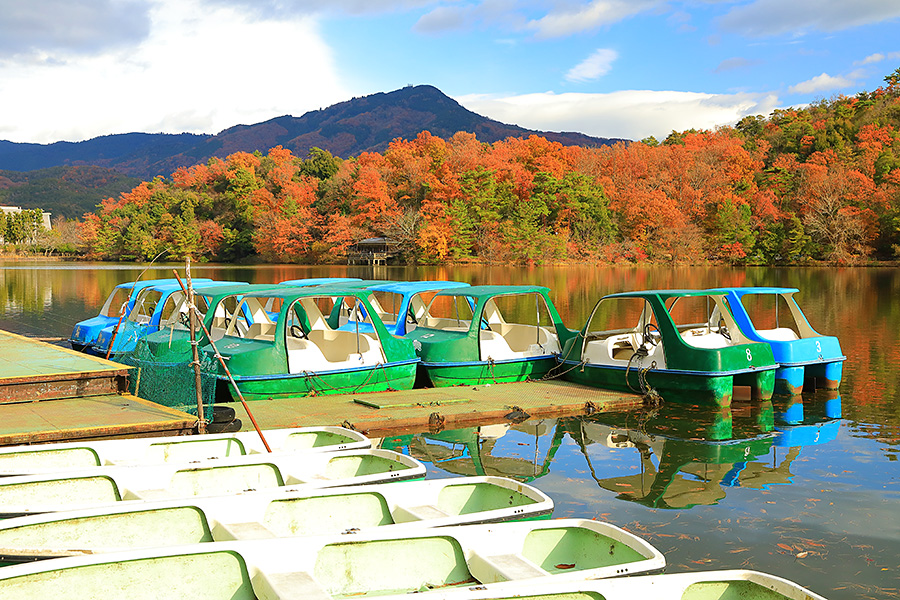 また宝が池内ではボート遊覧も楽しめる。手漕ぎボートは1時間1,000円、 自転車のように漕いで進む足漕ぎボートは30分1,000円。雄大な自然に包まれて、気持ちのいい時間を過ごせるだろう。デートスポットとしても人気がある。 |