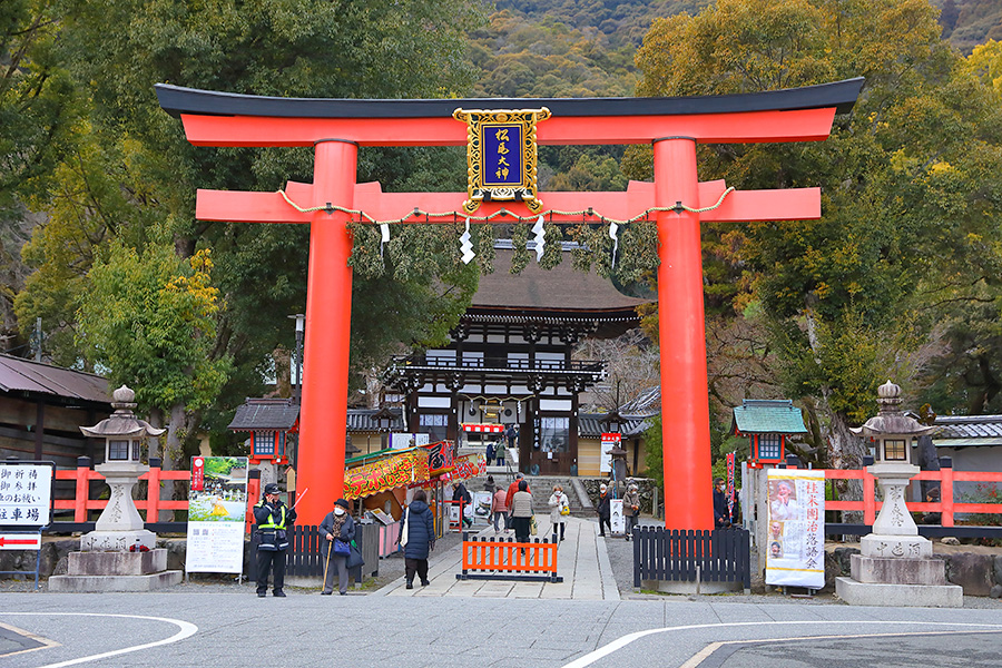 京都市西京区に位置する松尾大社(まつおたいしゃ)。松尾山の麓に鎮座する大きな神社。御祭神は大山咋神(おおやまぐいのかみ)、中津島姫命(なかつしまひめのみこと)。お酒の神様として親しまれており、境内には奉納された酒樽が飾られている。境内は春の桜、秋の紅葉、春の山吹など季節ごとに美しい景観が見られる。 |