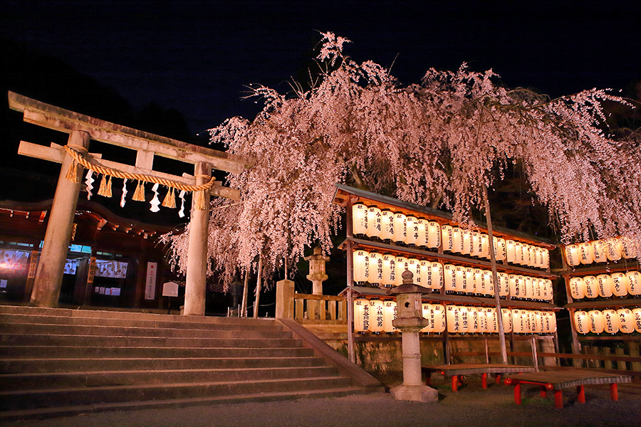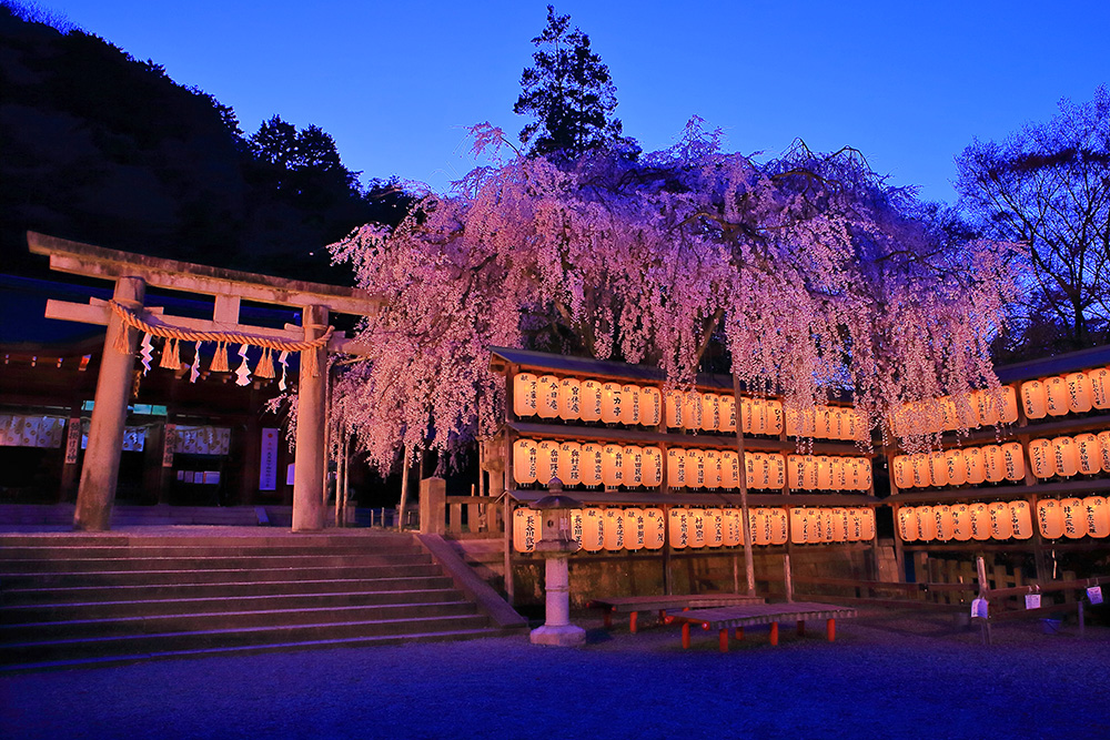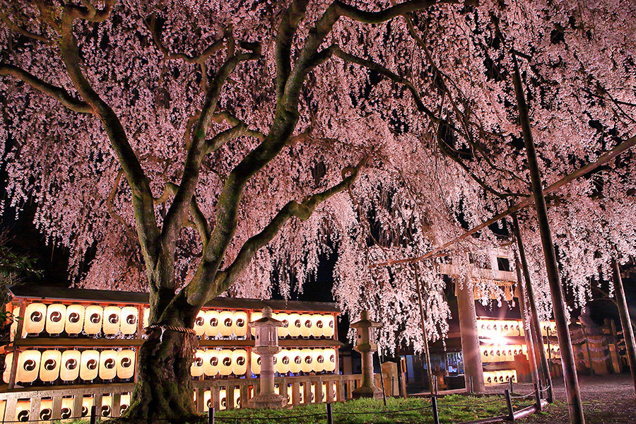 桜時期に開催される夜桜ライトアップは18:30頃から点灯される。ライトアップされた大石桜は幻想的な輝きを放ち参拝客の感動を呼んでいる。提灯の淡い光とのコラボレーションは夜桜の美しさを教えてくれるだろう。 |