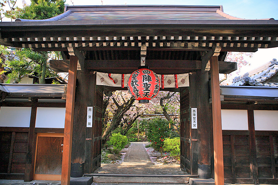 京都の西陣にある雨宝院(うほういん)。地元の人たちからは「西陣聖天さん」と呼ばれ親しまれている。境内は住宅地の一角にあるが、落ち着いた雰囲気に包まれている。 |