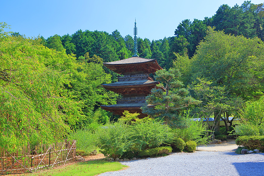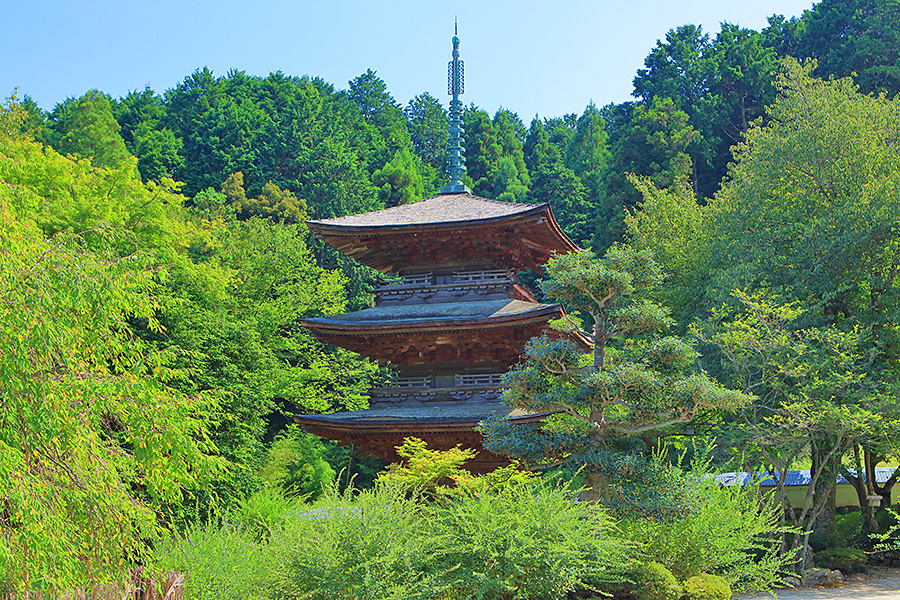 滋賀県米原市にある清瀧寺徳源院(せいりゅうじ とくげんいん)。山号は霊通山(れいつうざん)。鎌倉時代から江戸時代まで栄えた京極家の菩提寺である天台宗の寺院。また清瀧寺 京極家墓所(きよたきでら きょうごくぼしょ)として国指定の史跡でもある。境内には本堂、三重塔などが並ぶ。 |