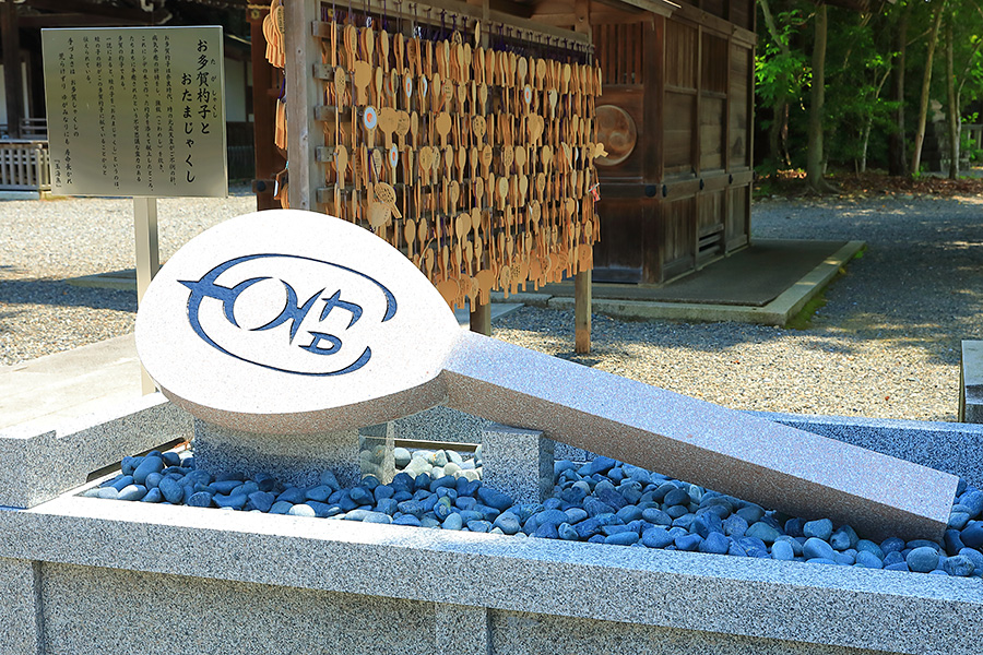 | 多賀大社に残るお多賀杓子(おたがじゃくし)の伝説、かつて元正天皇が病に倒れたときに、多賀大社の神主がご飯を炊き、シデの木材でつくられた杓子(しゃくし)で御飯をすくい献上すると、元正天皇は快方に向かわれたとのこと。それ以来、延命長寿のご利益をもたらしてくれる縁起物とされている。 |