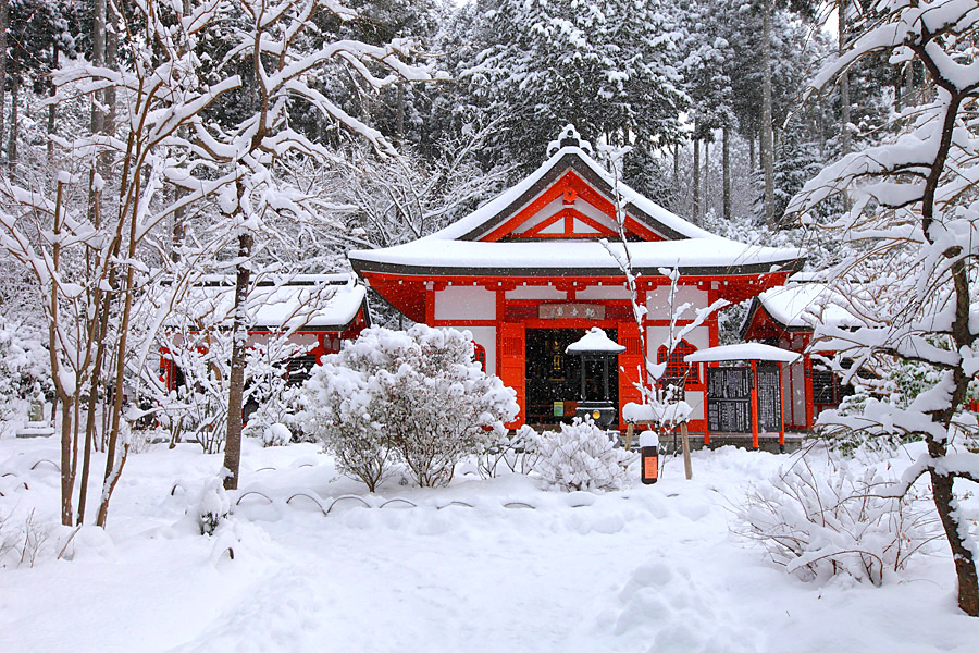 大原の里には宝泉院、寂光院、実光院、勝林院、来迎院、阿弥陀寺などの京都の雪景色名所が点在しているので合わせて寄ってみるといいだろう。 |