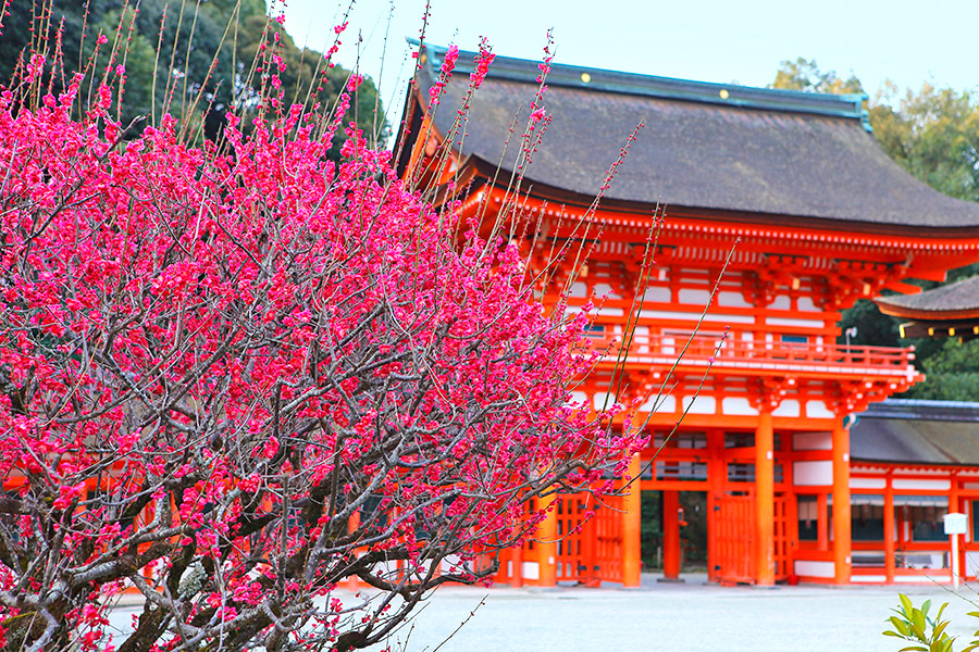下鴨神社の梅は、例年2月下旬〜3月中旬に見頃を迎える。